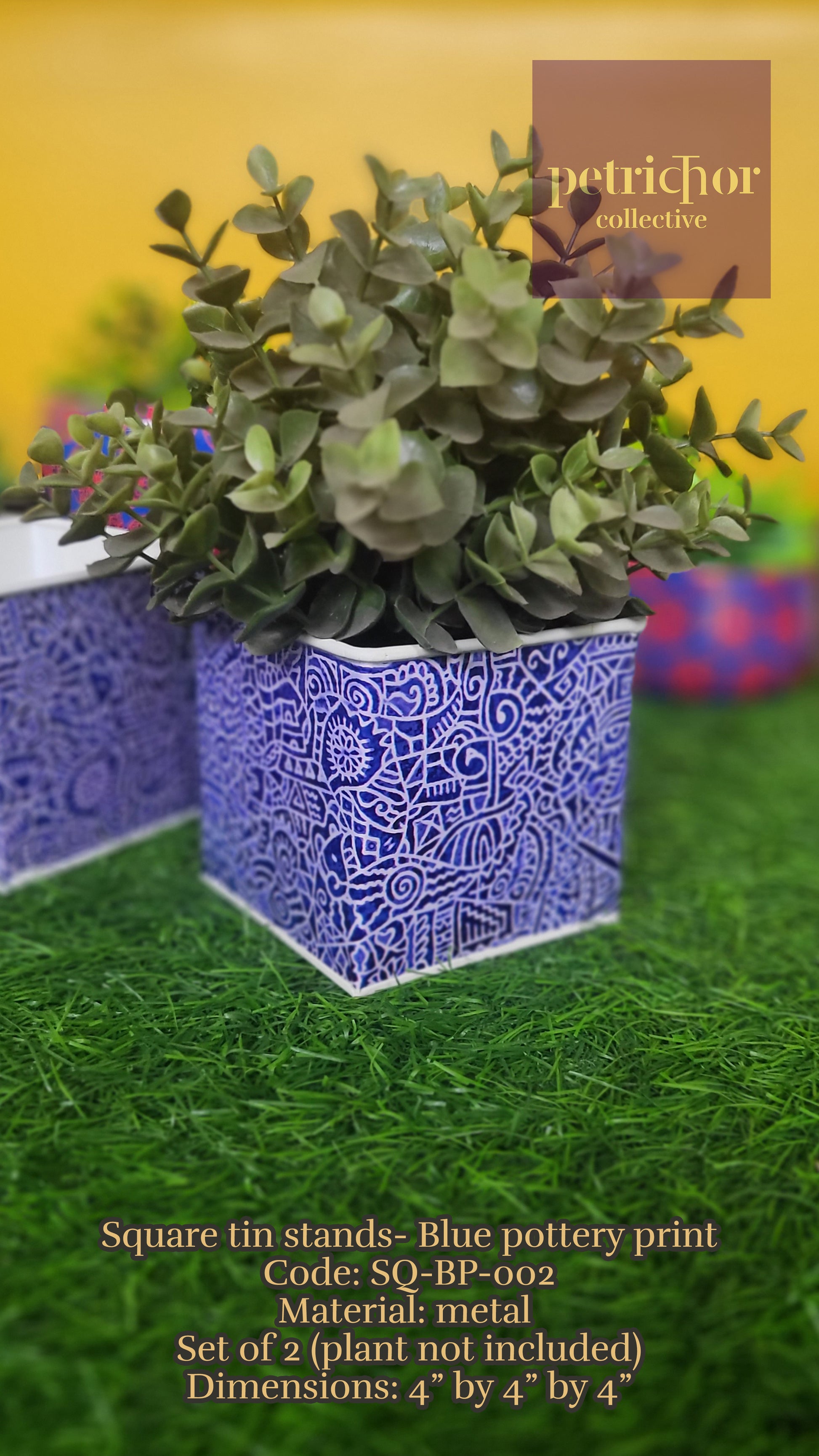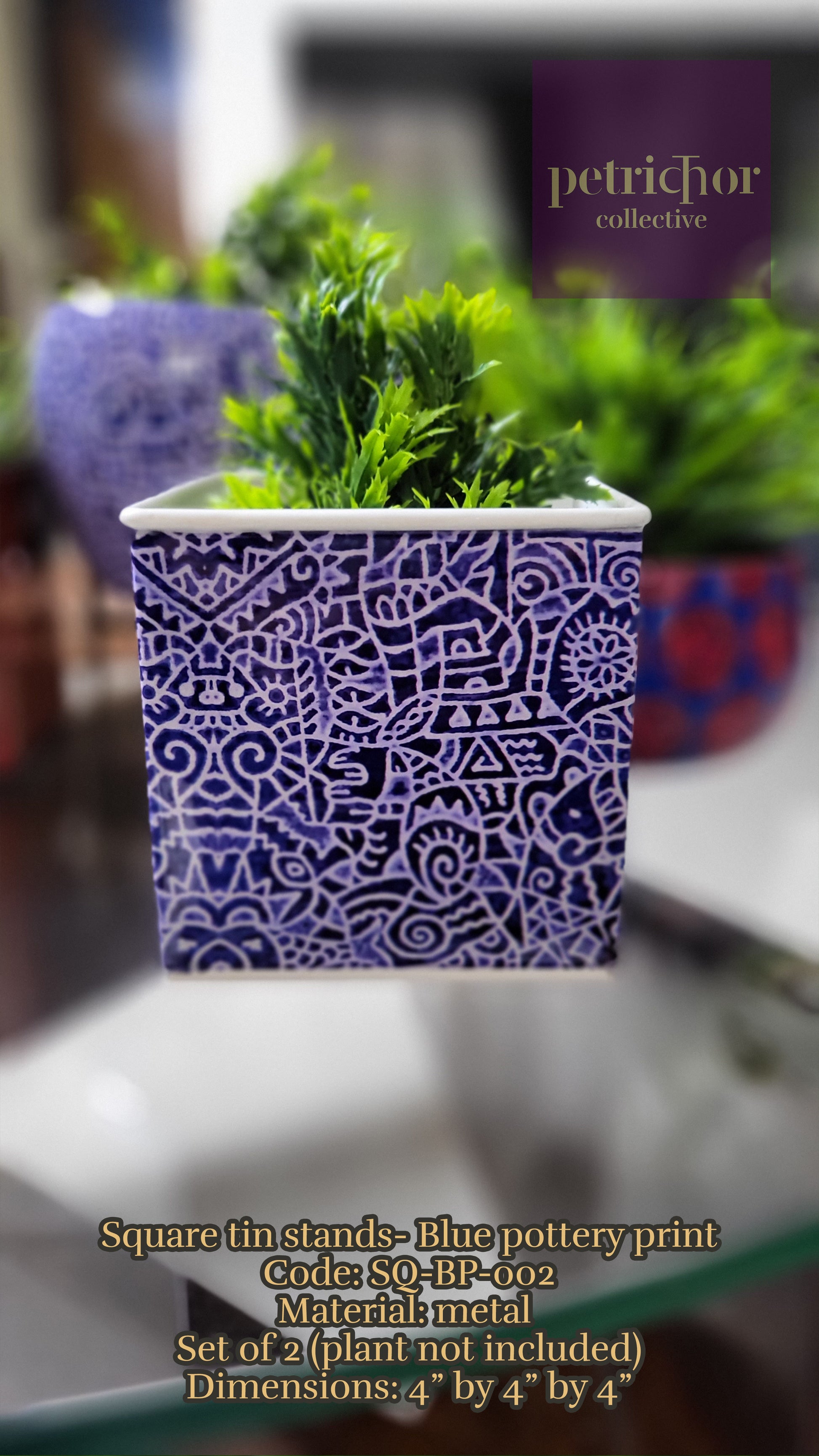 Blue Pottery Print Square Zenscrawl Planters (Set of 2)