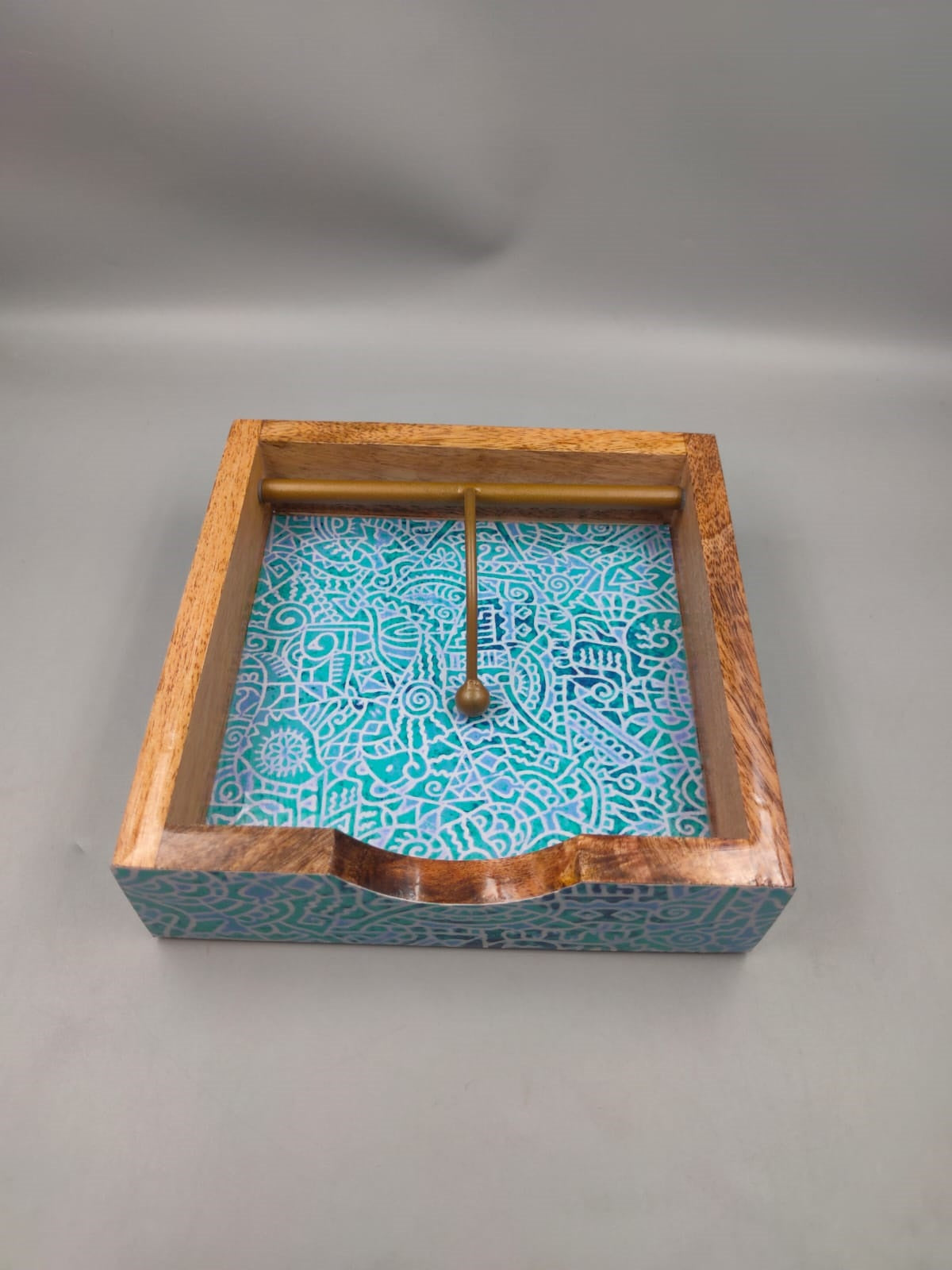 These mango wood paper napkin holders make for chic centre table art.