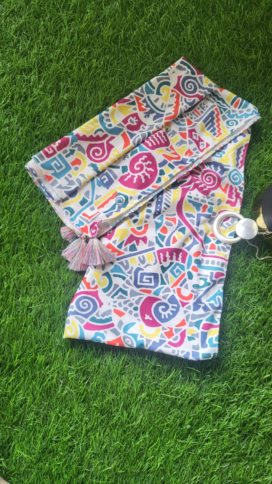 Add a pop of art to your couture with these colorful stole made from hand-drawn art.